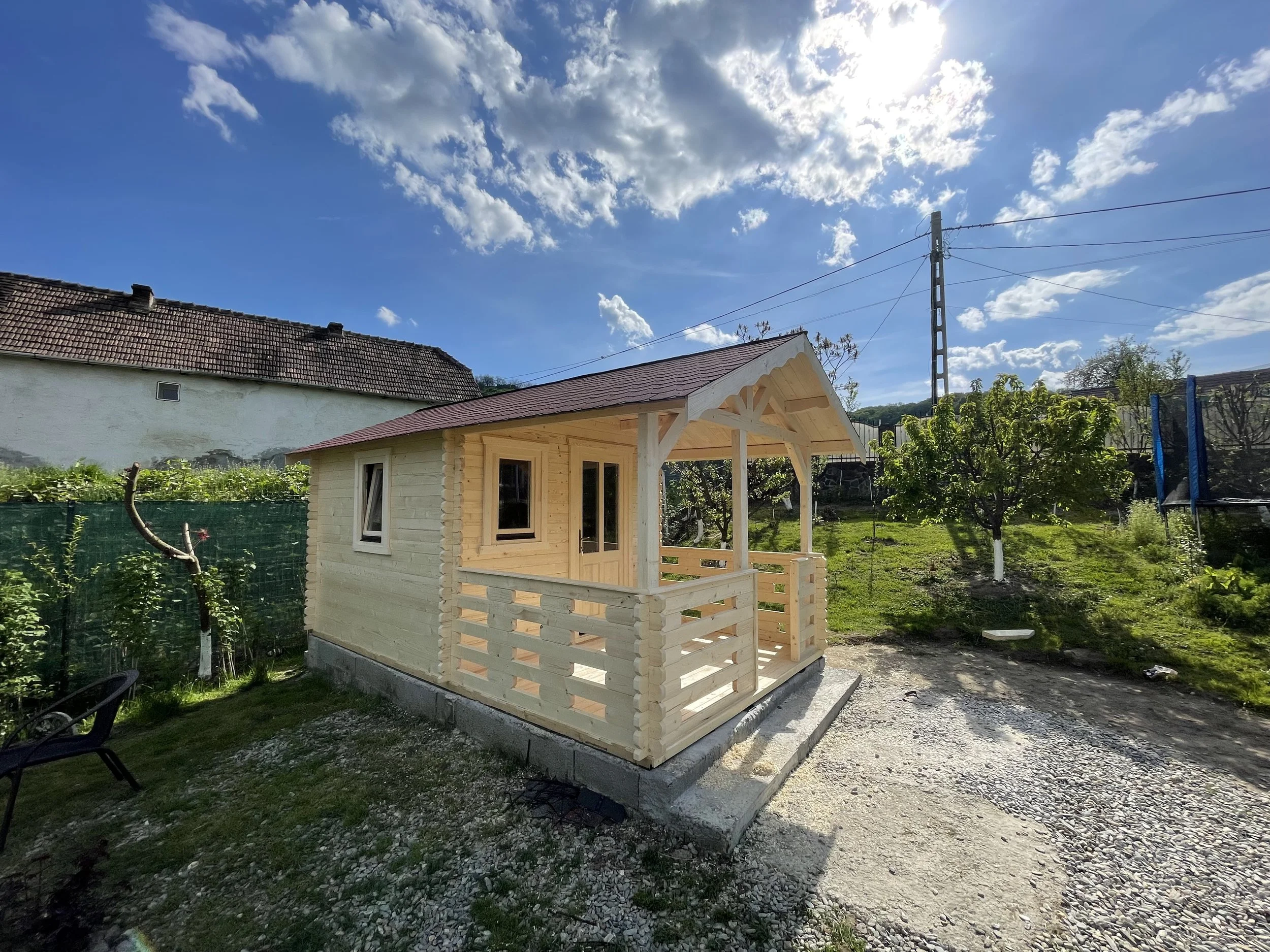 Casă de vacanță 6x6m (cameră, living și baie) + 2m terasă pe front din material de 40mm (6x8m în total)
